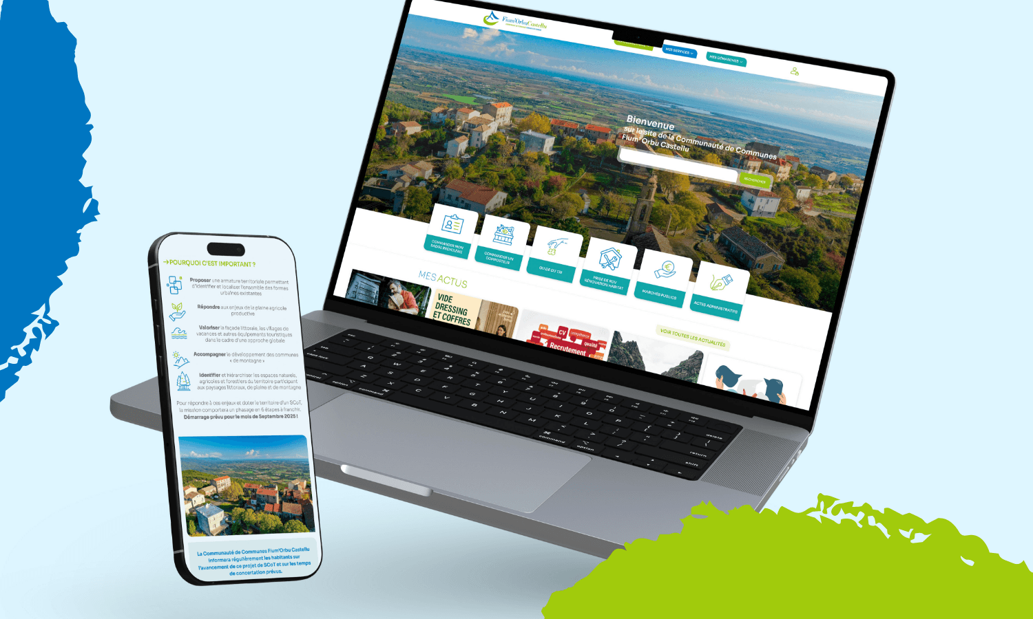 Nous avons récemment réalisé le site internet de la Communauté de Communes Fium’Orbu Castellu, ce projet a été pensé pour offrir une plateforme claire, moderne et accessible à tous, mettant en avant les services, les informations pratiques ainsi que les actualités du territoire.